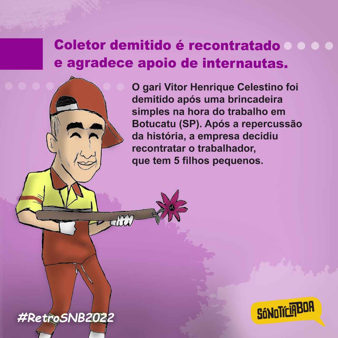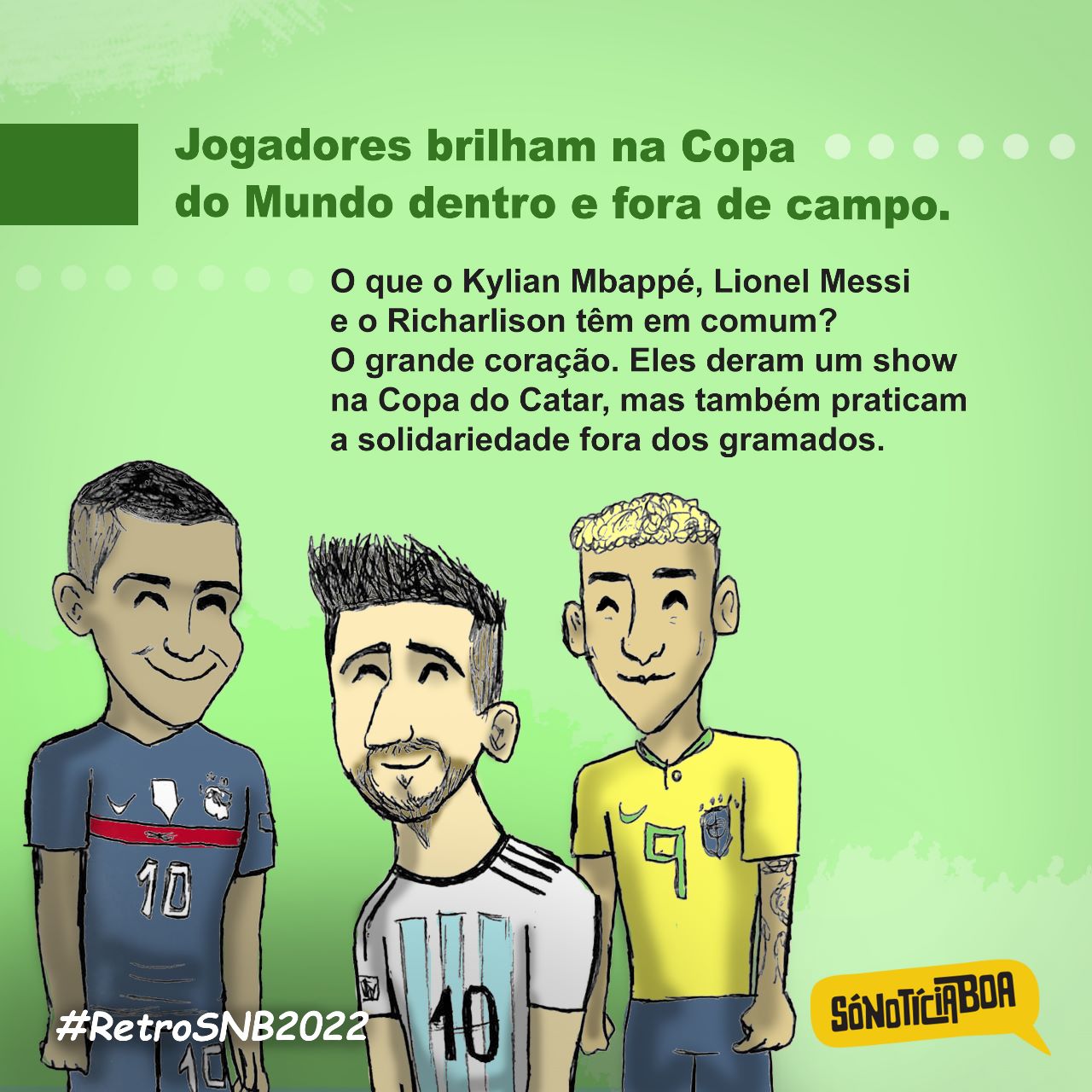 Encerramos hoje a Retrospectiva do Bem 2022 com uma tradição que adoramos: as charges do Arisson Tavares. Ele selecionou algumas das notícias boas mais lidas do ano no Só Notícia Boa e ilustrou com traços e cores que são característicos no trabalho do artista, que também é jornalista e escritor.
